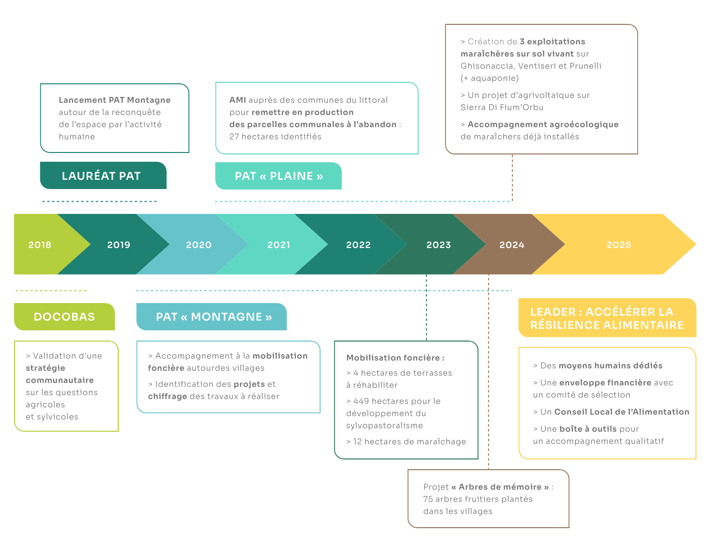Le PAT Montagne repose sur un travail foncier et agronomique conduit commune par commune, piloté par la Communauté de communes, avec l’appui de la Chambre d’Agriculture de Haute-Corse et du GIRTEC. Mais chaque commune est maître à son bord en menant de manière opérationnelle les actions définies.